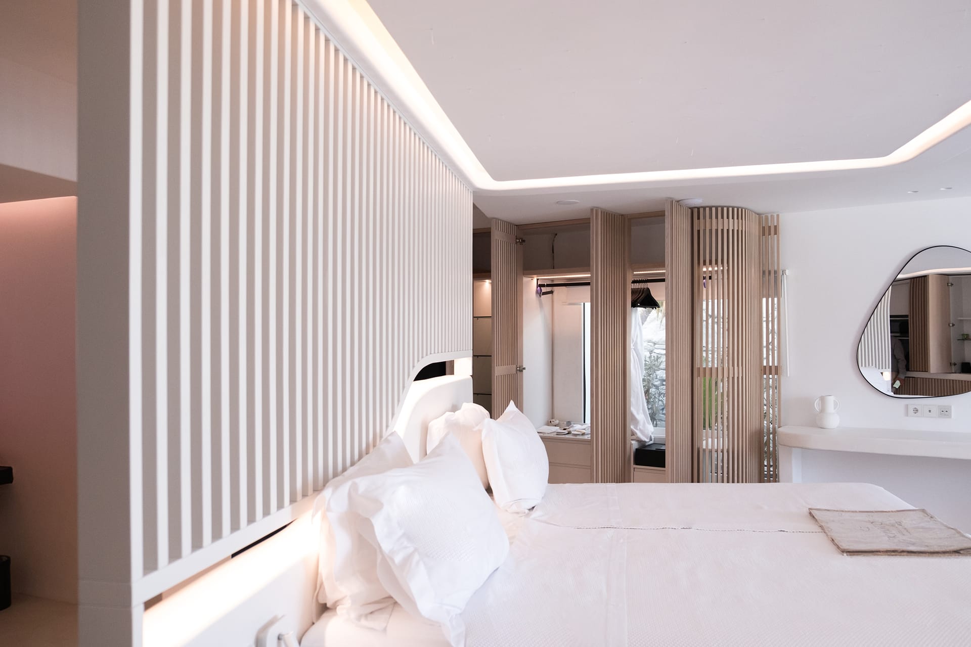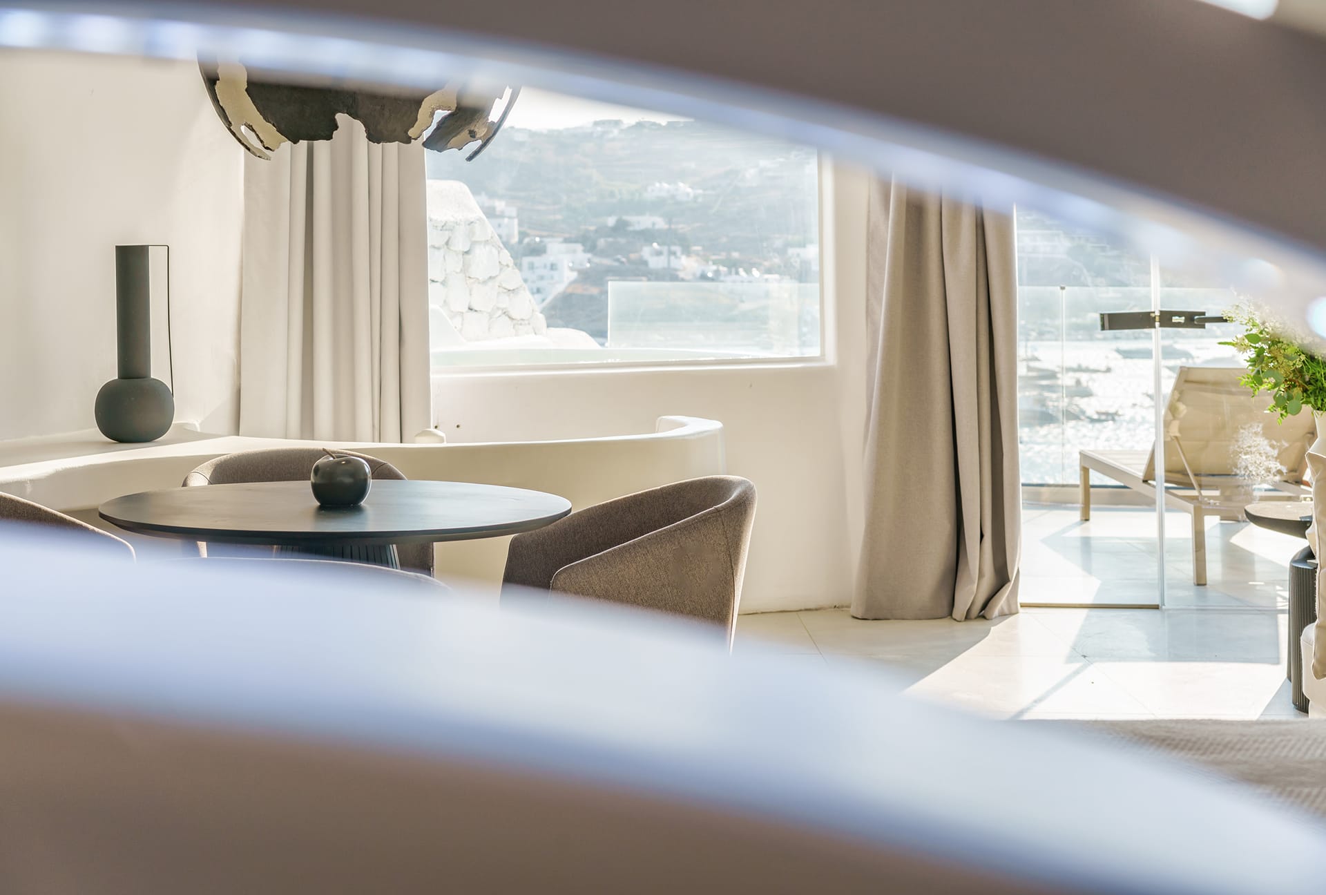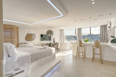 This unique in design and amenities Honeymoon Suite offers the ideal romantic getaway, complemented by the marvelous sea views and open-air jetted tub. A stunning and minimal Suite, with spacious design and contemporary style.