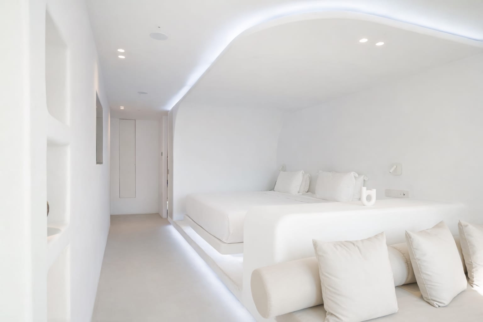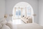 The Junior Suites are dashingly stylish, and spacious. They feature a bedroom with a Queen size bed, a sitting area with a couch, a bathroom with a bathtub or shower and a furnished balcony with direct Sea Views.