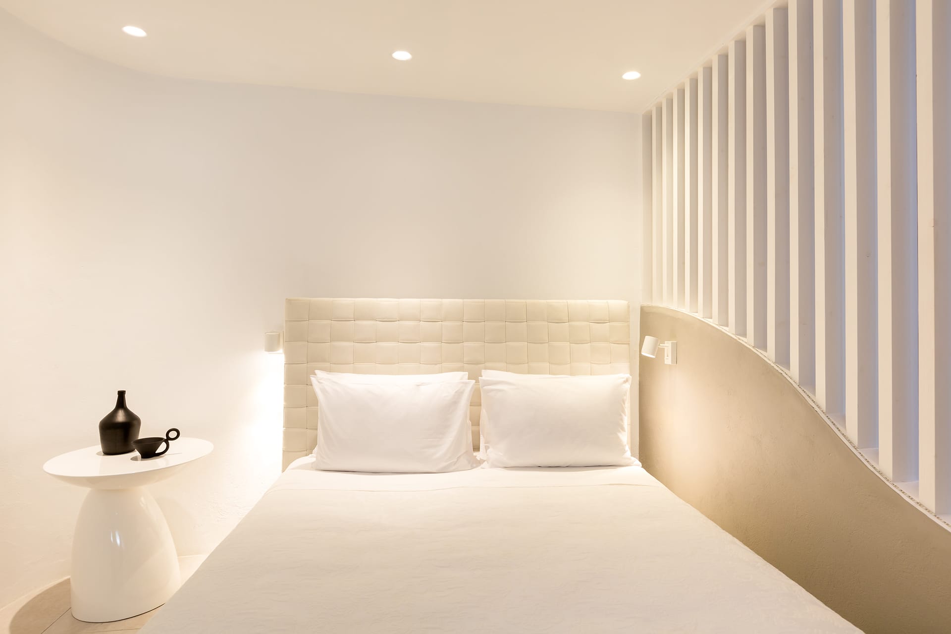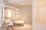 This 130 square meters Three-Bedroom Villa is located right above sea level, so close to the water you can actually listen to the waves hitting the shore of the hotel's private beach at night. It features three bedrooms (one master and two double bedrooms), a living room, a lounge area with a dining table, three bathrooms (one with Jacuzzi and en-suite shower room) and a walk in closet. The large outdoor area with the Infinity Private Pool, is furnished with sunbeds and umbrellas for sunbathing and also a dining table for candlelight dinners under the Aegean sky.